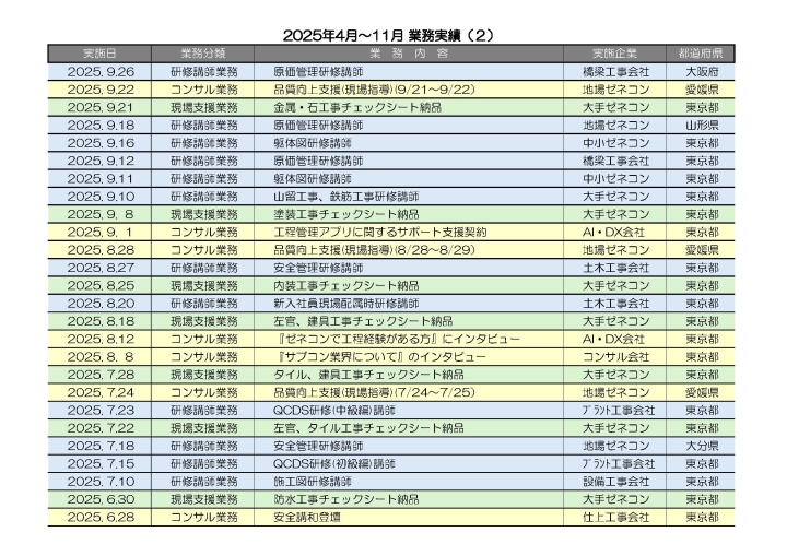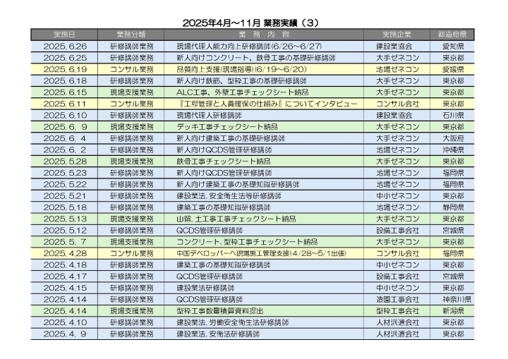 2024年度は、全国のゼネコン・専門工事会社・建設業協会など、研修業務をスタートしました。今の建設業界に若年技術者の教育の重要性を痛感した1年でした。